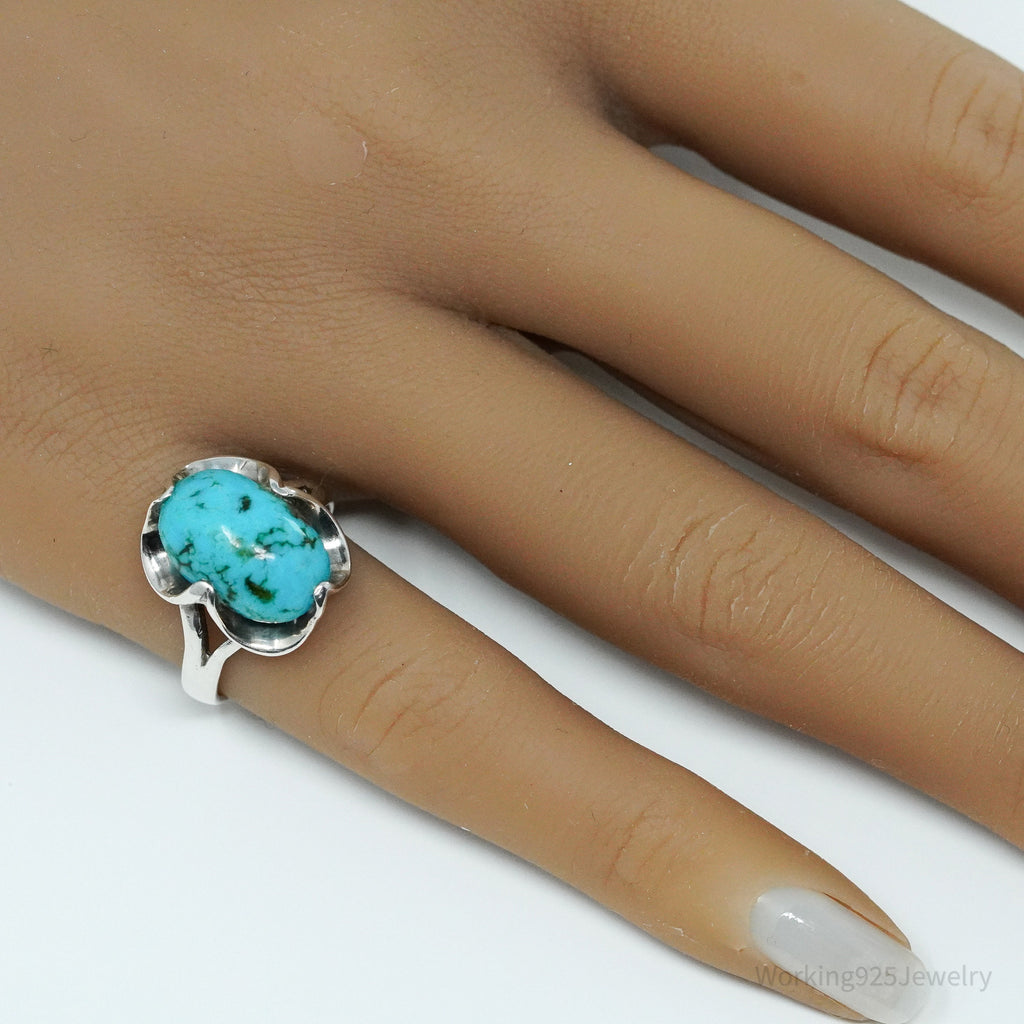 Vintage Western Turquoise Sterling Silver Ring - Size 6.75