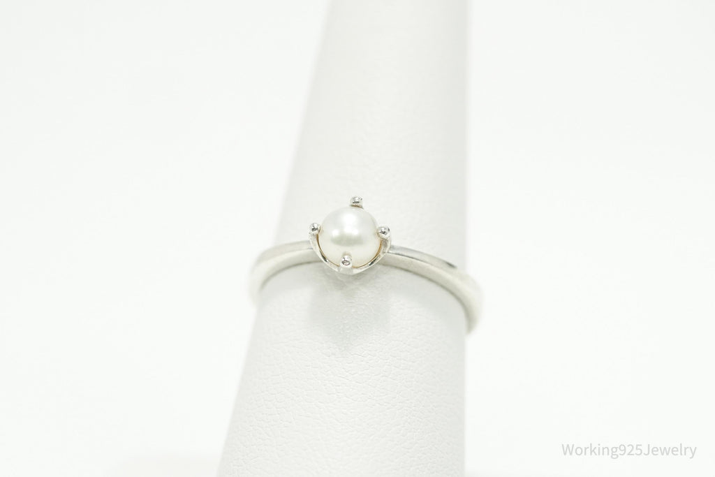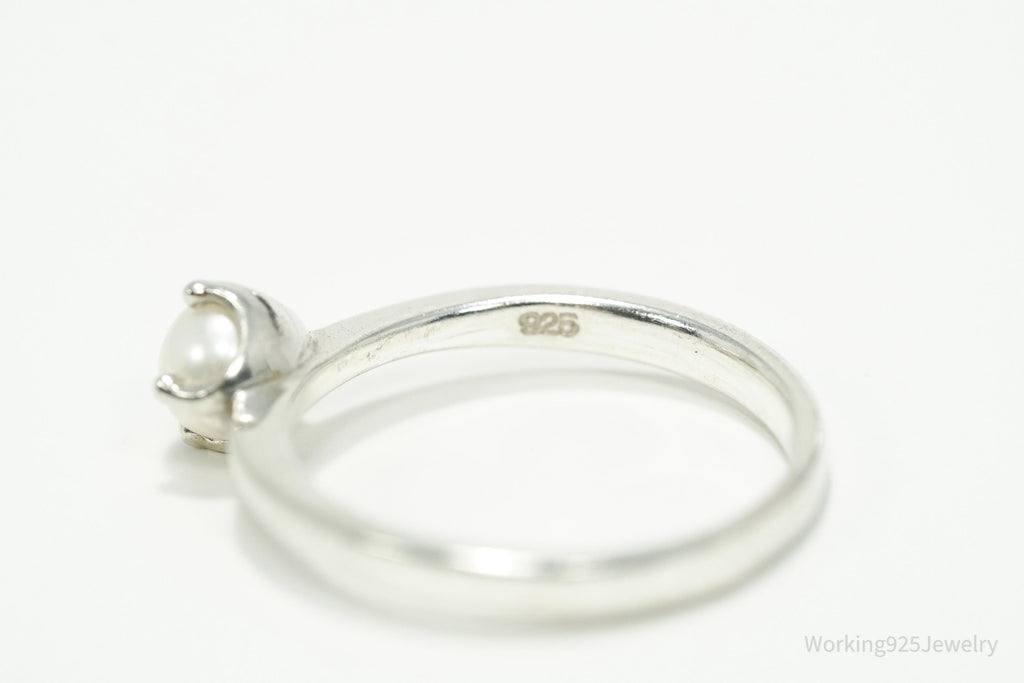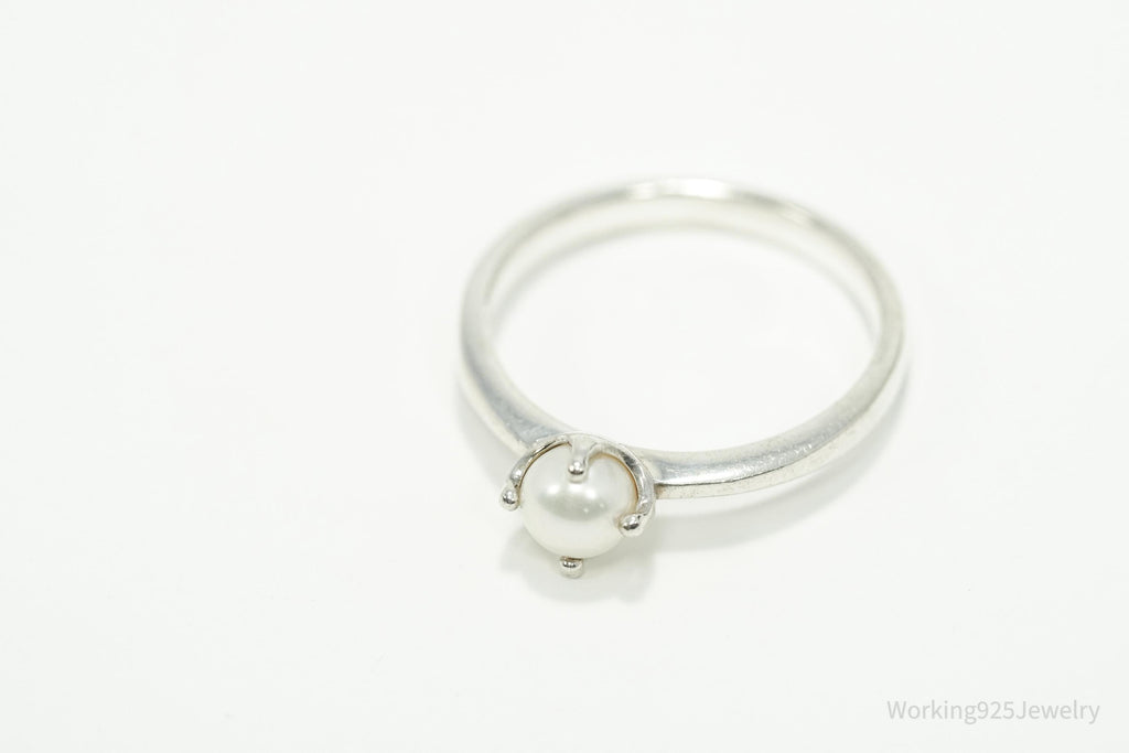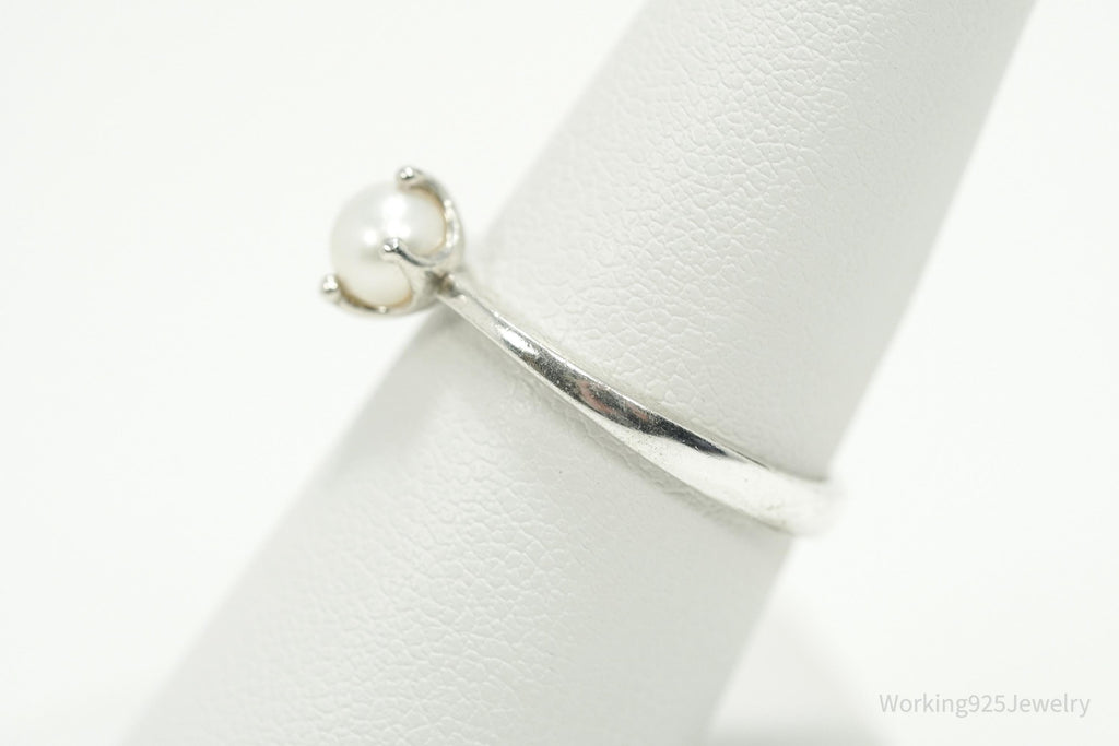 Vintage White Pearl Sterling Silver Ring - Size 7.5