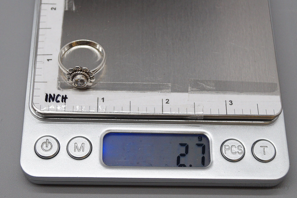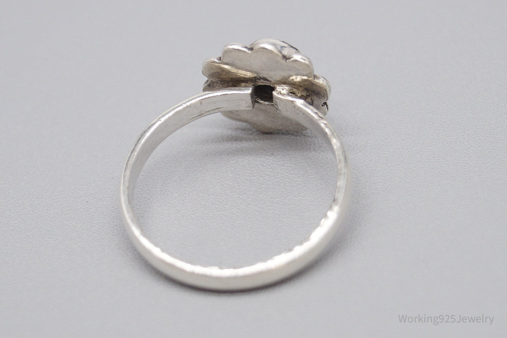 Vintage White Topaz Sterling Silver Flower Ring - Size 6.75