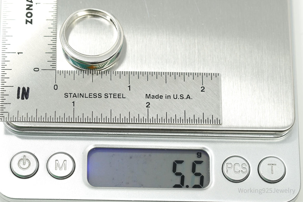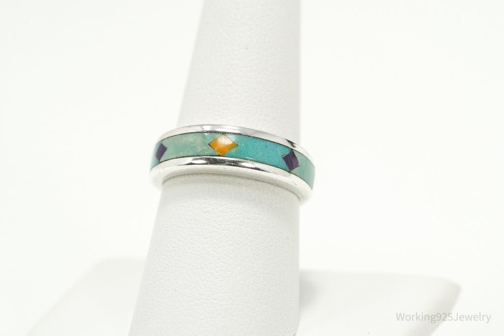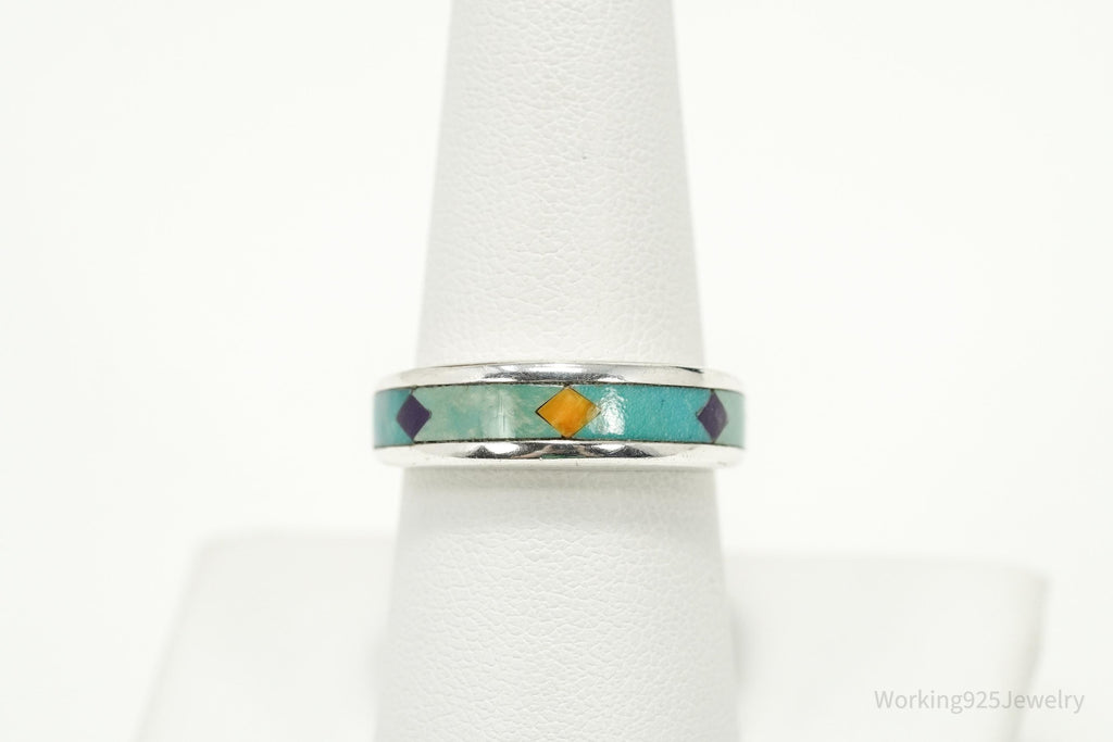 Vintage WJ Waldeck Johnson Sterling Silver Ring • Southwest Gem Inlay Sz 8