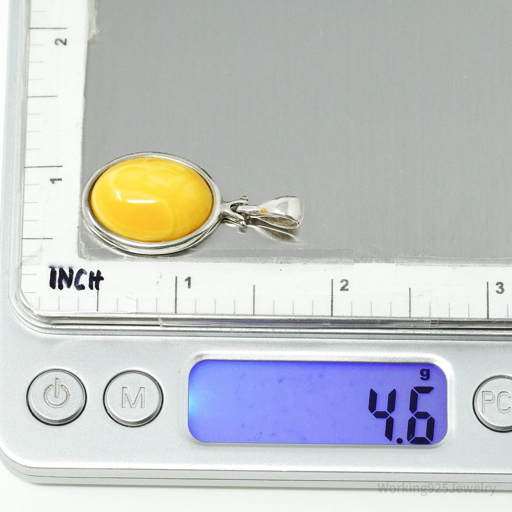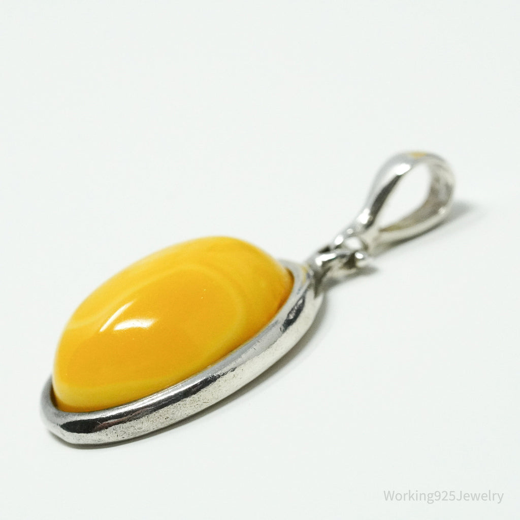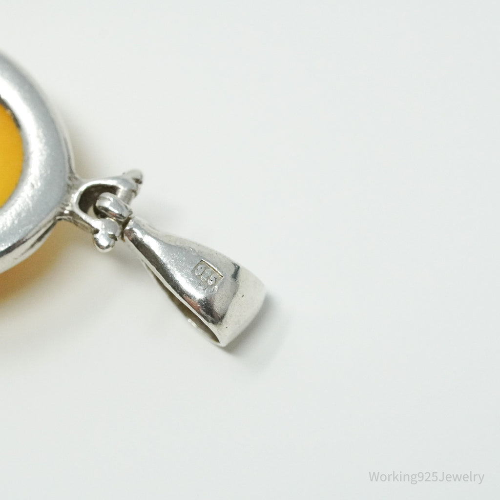 Vintage Yellow Amber Modernist Sterling Silver Necklace Pendant