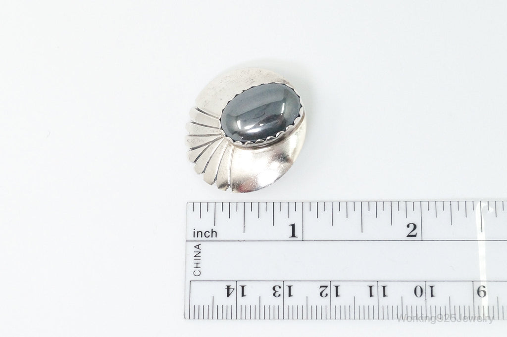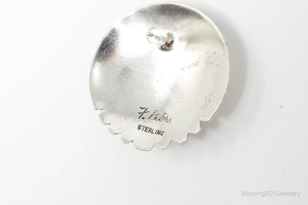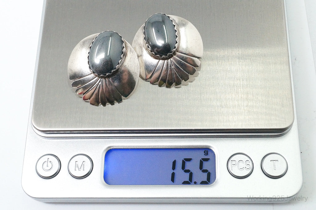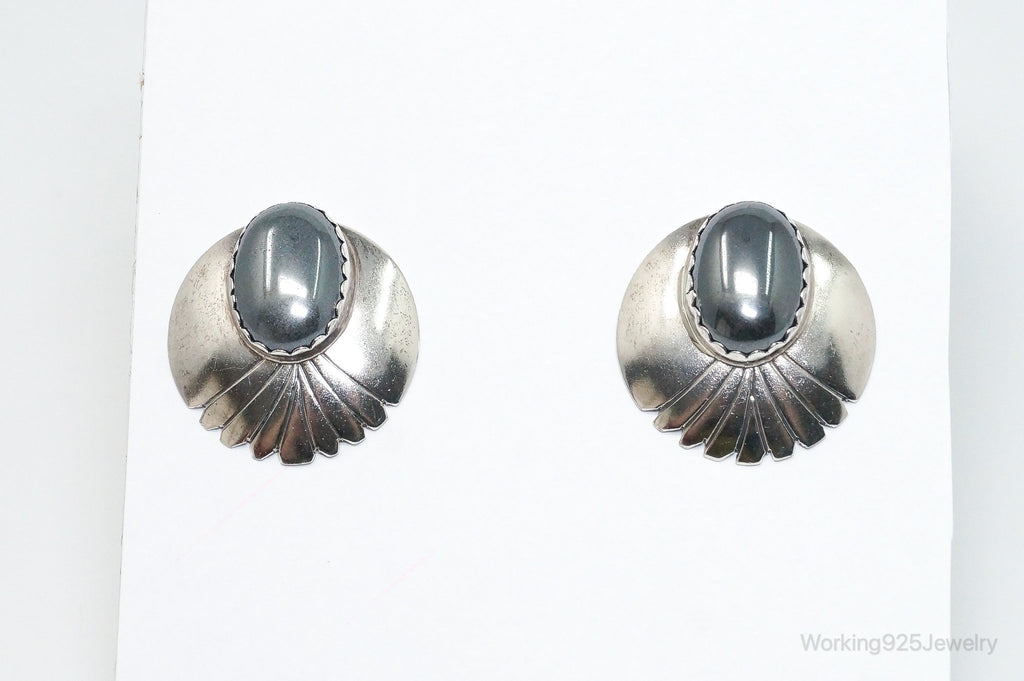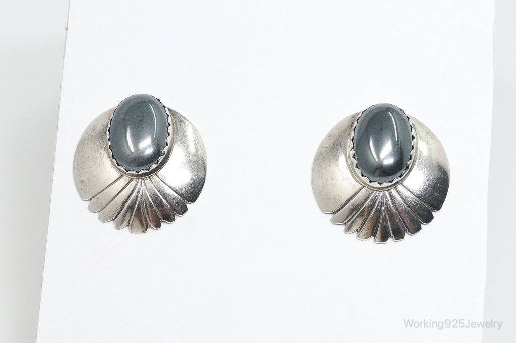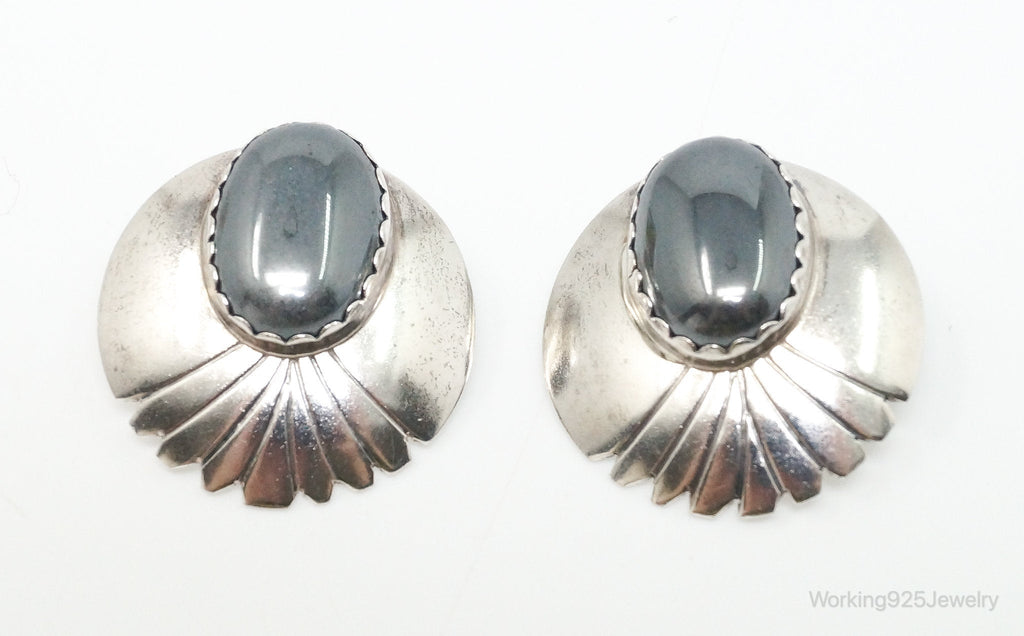 VTG Native American Handmade Fred Peters Hematite Sterling Silver Earrings
