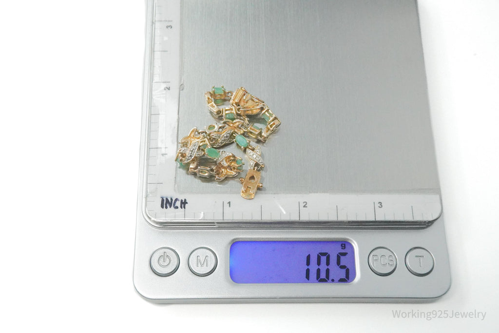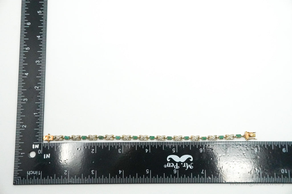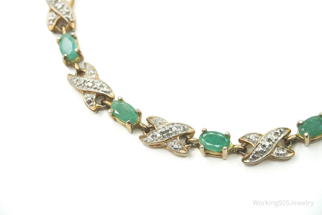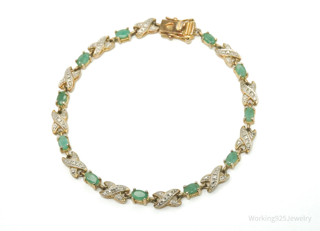 VTG Ross Simons Emerald & One Diamond 18K Gold Vermeil Sterling Silver Bracelet 7.75"
